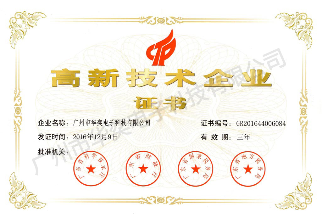 喜讯丨广州市华奕电子科技有限公司荣获“高新技术企业”称号