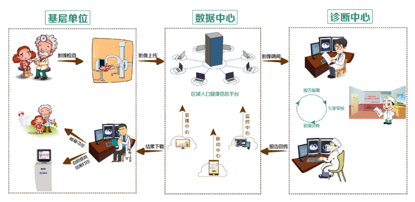 医学影像诊断中心是负责辖管区内的所有医疗机构影像诊断和质控;支持诊断中心间影像会诊的申请和会诊。解决基层医院影像诊断医生缺乏或资质不够的现状,上级审核影像报告,同时可培训、指导基层单位的诊断人员,助力基础医院质量管理,方便患者。