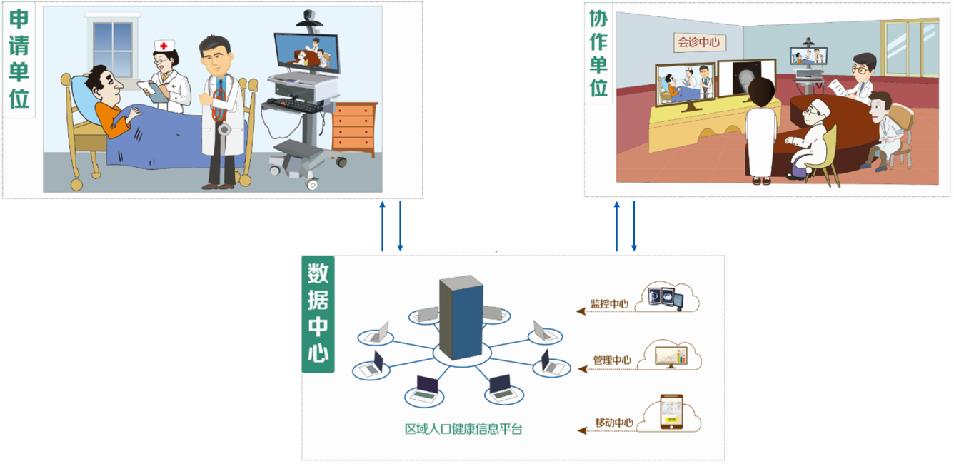 利用英德市区域医疗信息的互联互通性,依托远程会诊系统及音视频硬件的基础建立四个市远程会诊中心(英德市人民医院、中医院、东华医院、浛洸医院)。所有病史、检查结果、治疗经过等患者资料过程产物通过信息化手段上传到远程诊断平台上,上级医院组织专家为患者完成病历分析、病情诊断,进一步确定治疗方案的治疗方式,真正做到小病不出镇,大病不出县。