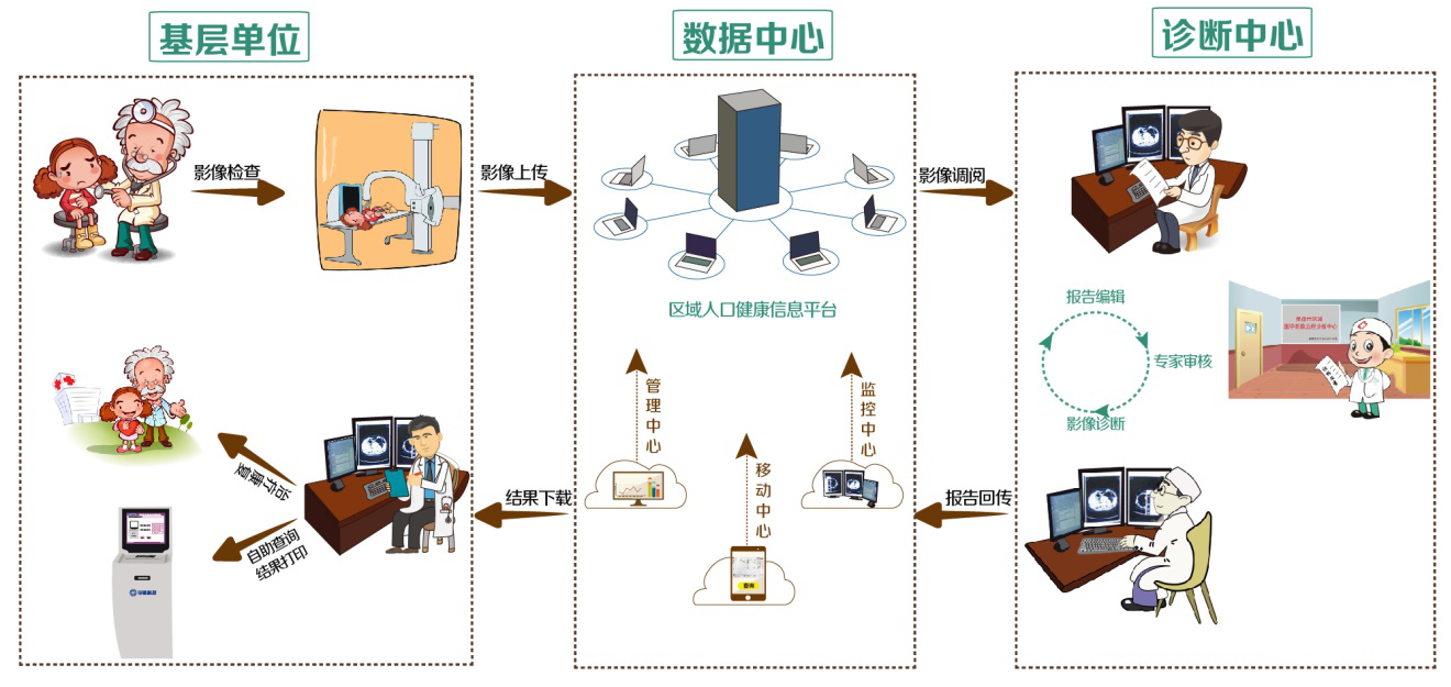 提供丰富的影像处理及科室管理工具,全面支持各医技科室及设备,通过对患者各类影像数据的采集、存储、处理、归档和共享,实现医学影像从数据到信息诊断价值的传递,同时与区域人口健康信息平台高度集成,数据数据互联互通。