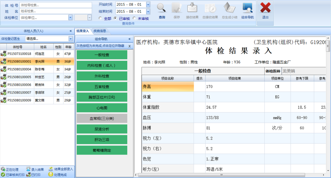 与区域人口健康信息平台高度集成,数据互联互通,对体检业务数据进行收集、整理和统计分析,实现医疗卫生服务机构体检人员对健康体检的管理全流程,支持公卫体检,实现体检数据从各业务系统自动获取,并自动导入电子健康档案库中。