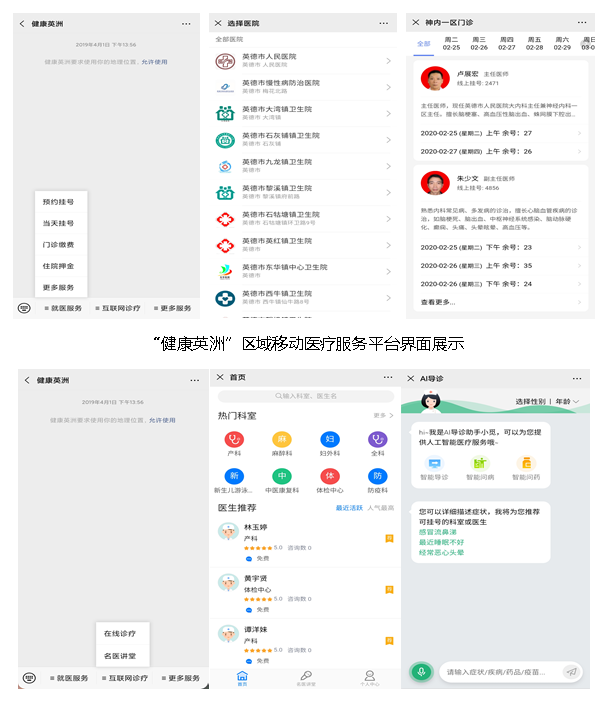 “健康英洲”区域移动医疗服务平台是英德卫健委在实施医改工作中重力打造、推进的民生实事之一,以“互联网+医疗”方式推进信息化建设,实现了区域内医疗机构就诊全流程的移动化,助力建设卫生强市,让市民享受更便捷更优质的医疗服务,切实方便英德市广大人民群众。