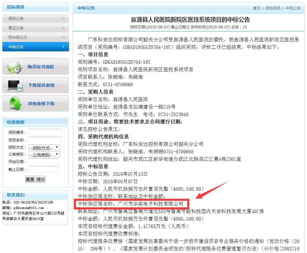 热烈祝贺我司喜中翁源县人民医院新院区医技系统项目标的。
