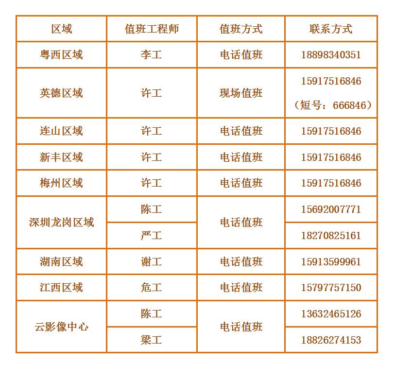 下面是我们值班工程师的安排情况表,请大家有需要多多联系!!!