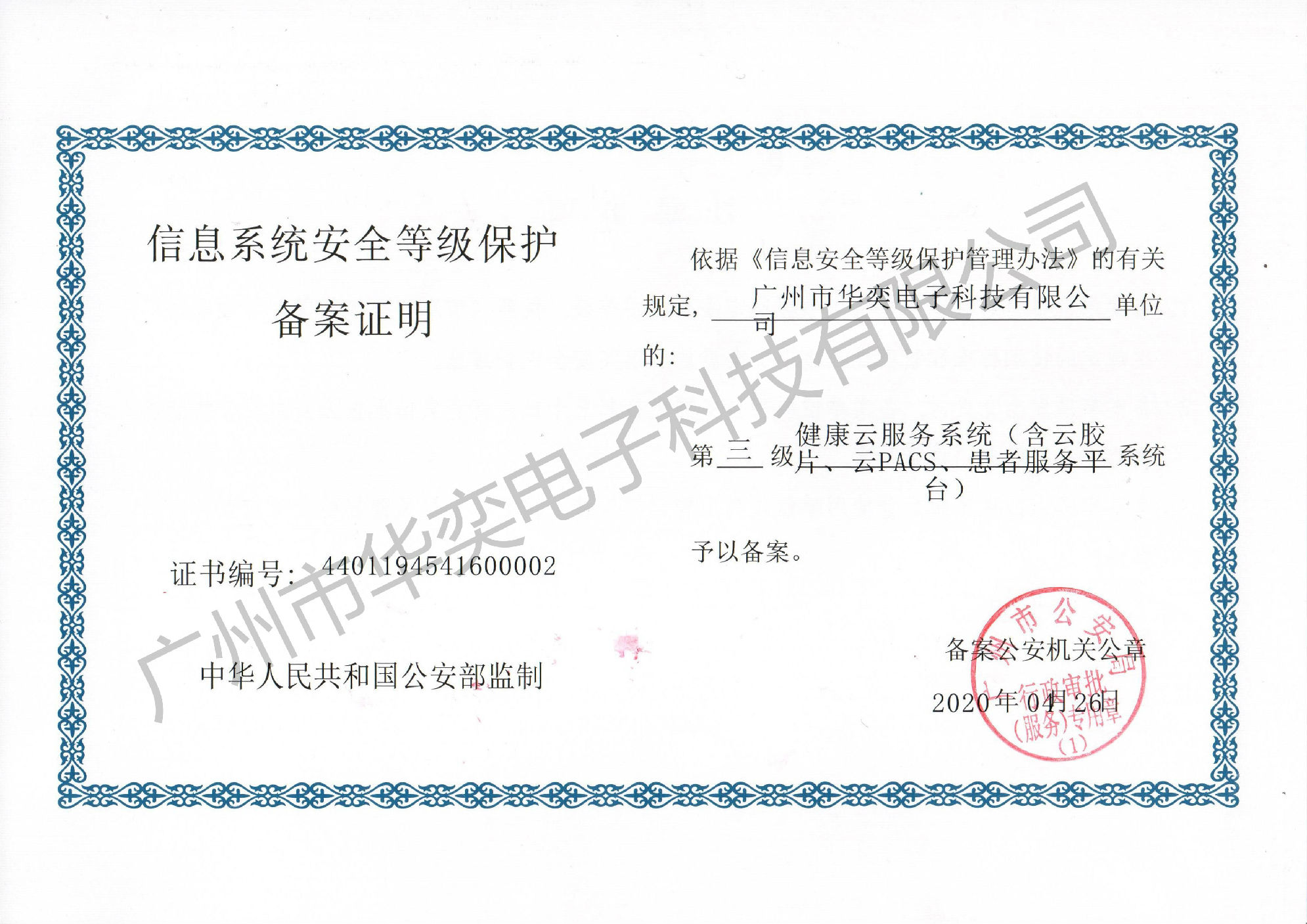 华奕运营的云胶片已经通过信息系统安全等级保护三级认证备案(证书编号 :44011945416000001),系统每年都要通过公安部认可的第三方检测机构对真实应用的系统进行安全检测,同时要使用安全产品进行实时监测,保证数据和系统的安全。