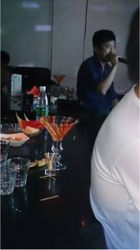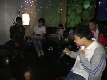 会后,同事们参与了公司组织的歌唱才艺活动。