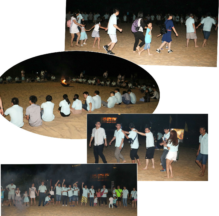 在璀璨的夜空下,摇曳着的火苗照映着每个人的笑脸,篝火晚会正式开始: