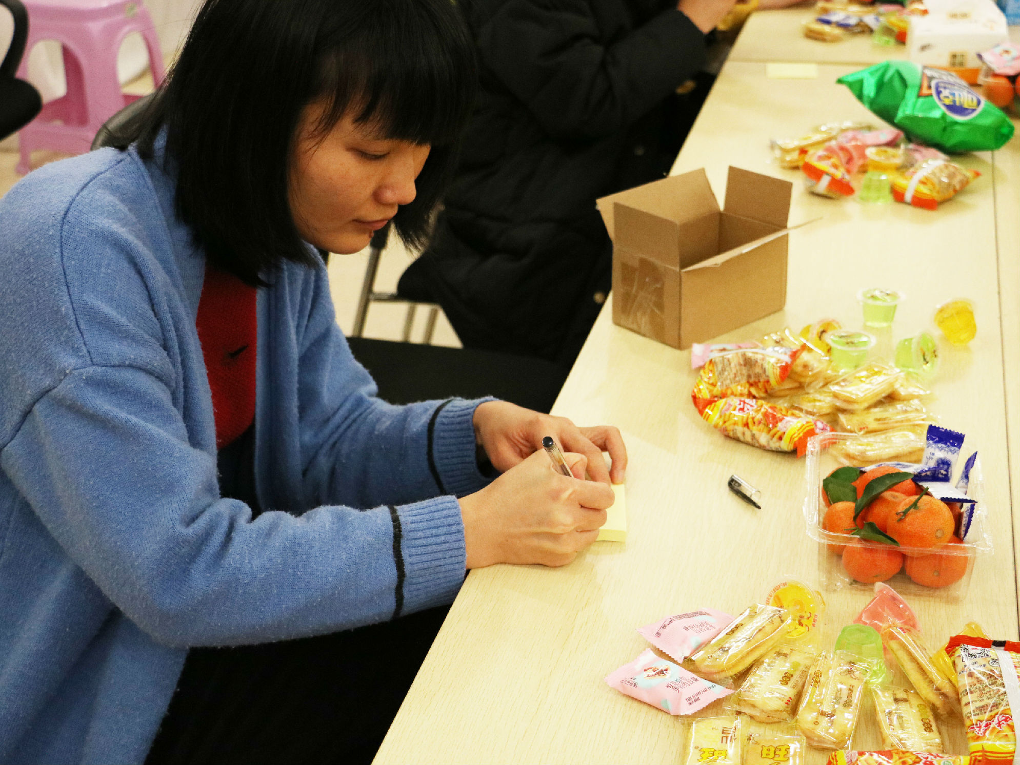大家忙碌写新年的祝愿语……